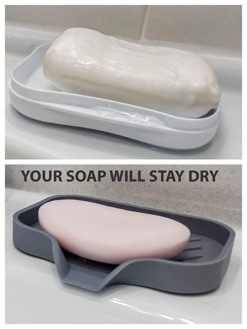 100 % Silicone SOAP CONTAINER - The soap save is made of silica gel, which is soft and flexible and not easily damaged. Easy to clean, can be used for a long time. SELF DRAINING SOAP HOLDER - The silicone sponge caddy is a must need for your kitchen counter organizer. Being handy sink tray, the dish sponge holder keeps things an easily accessible place on hand. Sink sponge holder protects sink area from soap or water and keeps the wet sponges off the counter. PREMIUM SILICONE MATERIAL: Our silicone sink caddy is made of flexible silicone. After use, simply wash it with a warm soapy water. Or simply toss into the dishwasher! Each sink tray measures 12.4 x 9.8 cm. SOAP DISH WITH DRAIN - Silicone soap dish never get rust or moldy. Dose not slide around and stick too tightly to your soaps. These soap dishes are suitable for different size of soaps. KITCHEN SINK ACCESSORIES - soap dishes can be used for bathroom, kitchen, and other places. These soap trays mainly used at home for shower, bath tub, dish sponge, cleaning ball, men's shaver, shampoo, shower gel, ladies hair Clips, earrings, and other small items.