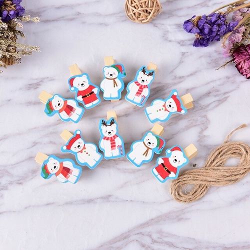 Dropship 10pcs Christmas White Snow Bear Wood Clips For