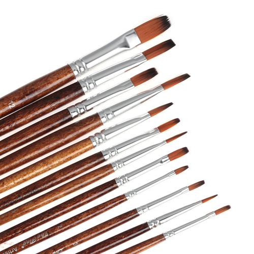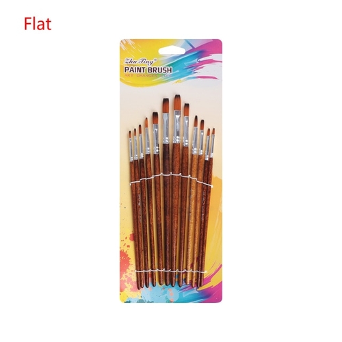 Hair Material: Nylon Hle Material: Wood Name:: painting pen Quantity:: 12pcs/set Color: Brown Length:: as picture show Type:: Tip/Flat brush feature1: Pen Brushes feature2: Nylon hair feature3: Drawing Brush