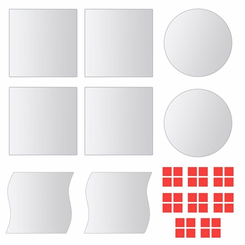 You can stick these mirror tiles to the wall by using the included stickers. Delivery includes 8 square mirror tiles, 4 oval mirror tiles, 4 S-shaped mirror tiles and 64 adhesive strips.