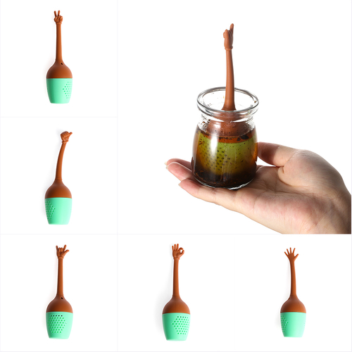 Material: Silicone feature1: Tea Infuser feature2: Funny H Gestures feature3: Silicone Strainer red dianmond: Loose Leaf Diffuser Black Club: Herbal Spice Holder Red Heart: : Herbal Spice Holder Size: : about 13 * 4 cm / 5.12 * 1.57 in