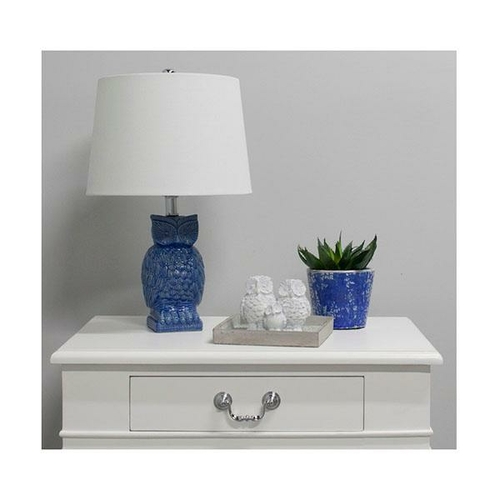 Add a quirky accent to any room with a unique ceramic owl lamp. Have it watch over your household from one of our consoles or side tables. This Owl Table Lamp comes complete with white American fitting shade (harp & finial included) It needs a bayonet fitting bulb up to 60 watts.