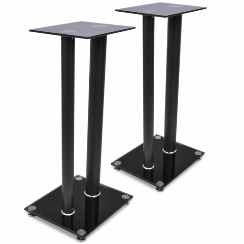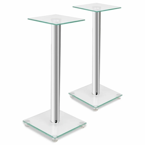 This pair of speaker stands has been designed for monitor speakers. The top and base plates of the stand are made of tempered glass. Thanks to the large glass surface and the sturdy pillar, your speakers are sturdily supported. The modern elegant design blends well with any contemporary home environment.