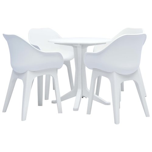 The bistro set is made of solid plastic, which makes it durable and strong, as well as weather resistant and easy to clean. The garden furniture set is also lightweight and easy to move around. The garden table and chairs are easy to assemble.