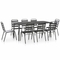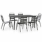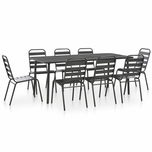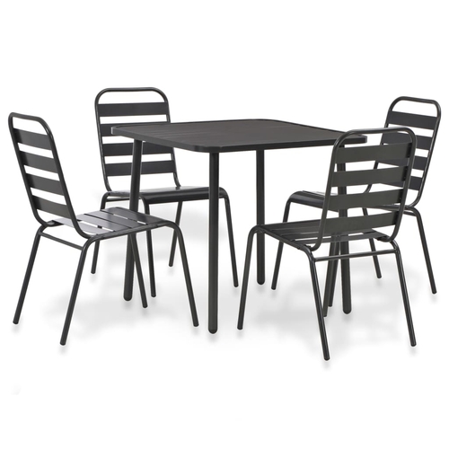 The high-quality table and chair set is made of sturdy steel that has been e-coated and then powder-coated. The e-coating (electrophoretic coating) is applied to make the table and chairs resistant to rust, weather, and long-term outdoor use, while the powder coating helps to enhance the durability. The dining chairs can be stacked to save space when not in use. The garden furniture set is easy to clean and maintain.