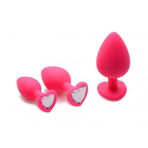 3 PIECE PINK HEARTS SILICONE ANAL PLUGS