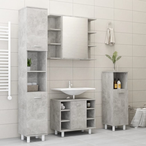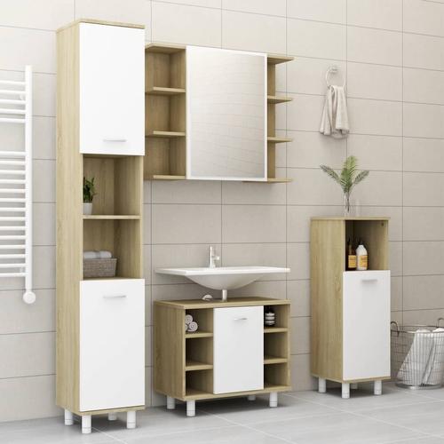 This stylish bathroom furniture set features 1 high cabinet, 1 medium cabinet, 1 under basin cabinet and 1 mirror cabinet. It creates additional storage space for your bathroom with a stunning and neat appearance.