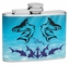Sharks are the lions of the sea. They are kings of the underwater jungle and are a force not to be reckoned with. They are also known to be quit gentle and curios species. This flask has 2 different types of tribal shark designs along with shark silhouettes surrounding a sunken anchor at the bottom. The background is a blue underwater scene and you can see the sunlight from above the water reflecting off the sea floor.