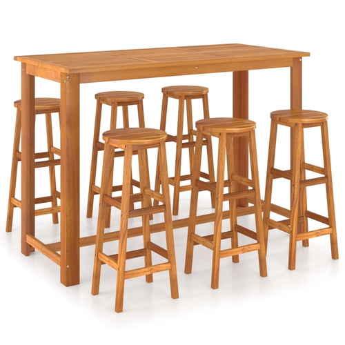 The bistro set is made of solid acacia wood with an oil finish, making it stable and durable. The sturdy tabletop can be used to hold your drinks and snacks etc. The built-in footrest also adds to the seating comfort.