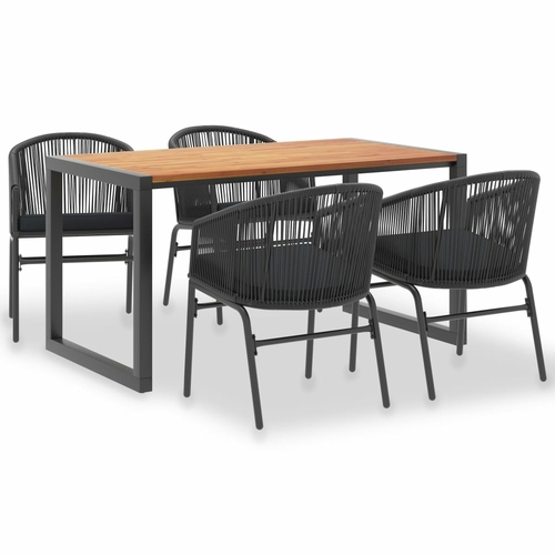 The outdoor dining table has a tabletop made of solid acacia wood, a tropical hardwood, which is weather-resistant and highly durable. The powder-coated metal construction is corrosion-resistant and rust-resistant. It also gives the table an industrial look.