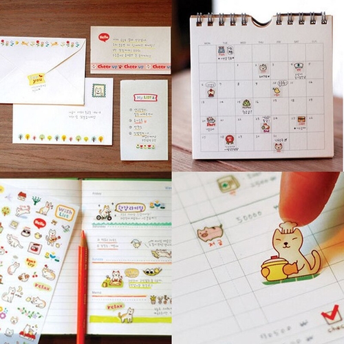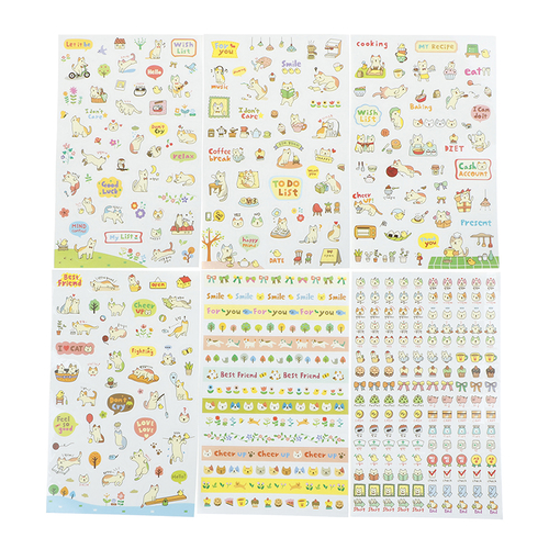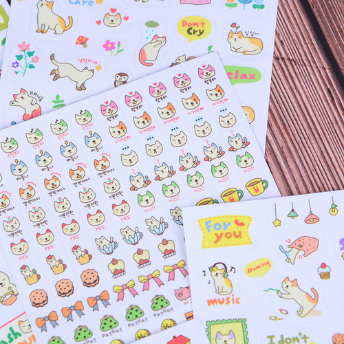 6 Pcs/set Cartoon Cat Sticky Paper Paper Stickers