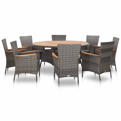 This rattan dining set has an elegant, contemporary design and will be a great choice for al fresco dining or relaxing in the garden. Made of weather-resistant PE rattan, the dining set is easy to clean, hard-wearing and suitable for daily use. The powder-coated steel frames make the table and chairs strong and sturdy. The tabletop and the armrests are made of acacia wood, a tropical hard wood, which is weather resistant. Thanks to their lightweight construction, all items are easy to move.