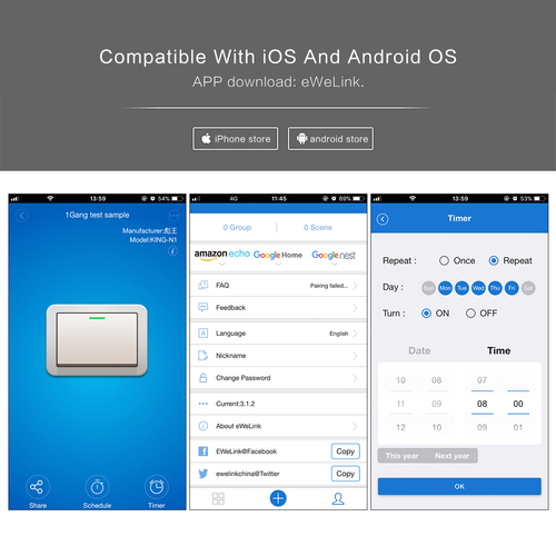3. please note these switch only work on 2.4G WIFI network, not 5G.