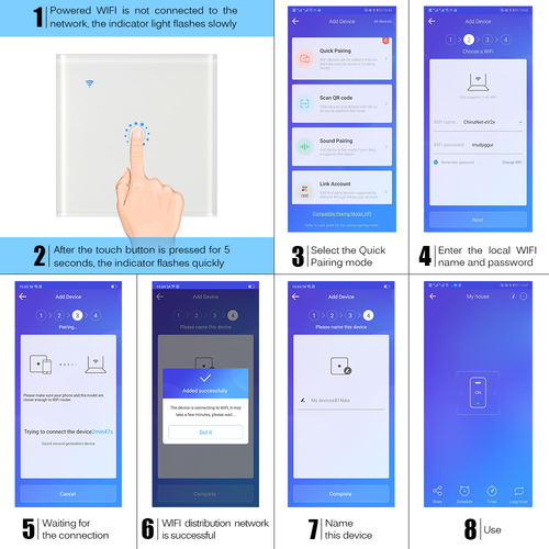 The touch switch panel supports maximum power of 2200W that can work with most lights and other electric appliances, it is also Compatible with iOS and Android OS.