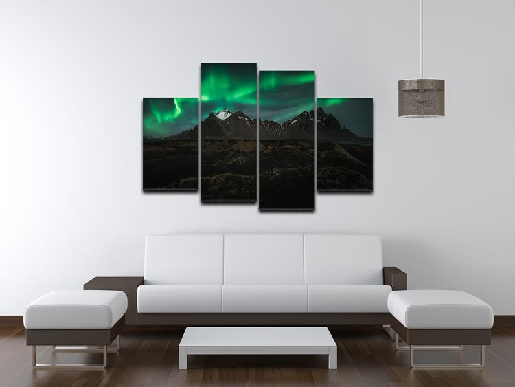 Aurora Borealis 4 Split Panel Canvas artwork showcasing vibrant northern lights across four panels.