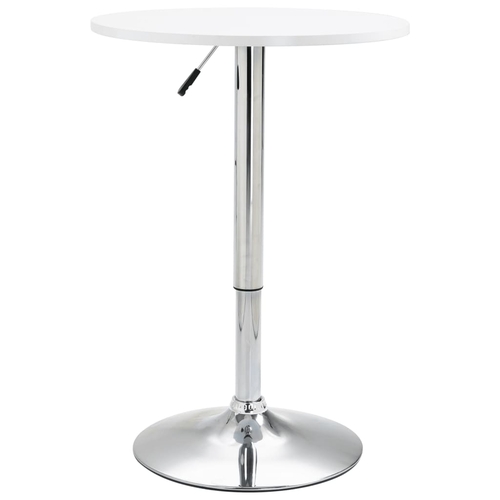 The round top is made of MDF board which is easy to clean. The chromed steel frame adds to the bar table's stability and sturdiness. Additionally, featuring a height-adjustable mechanism, this table can be adjusted from 70 to 91.5 cm to accommodate different sitting or standing needs.