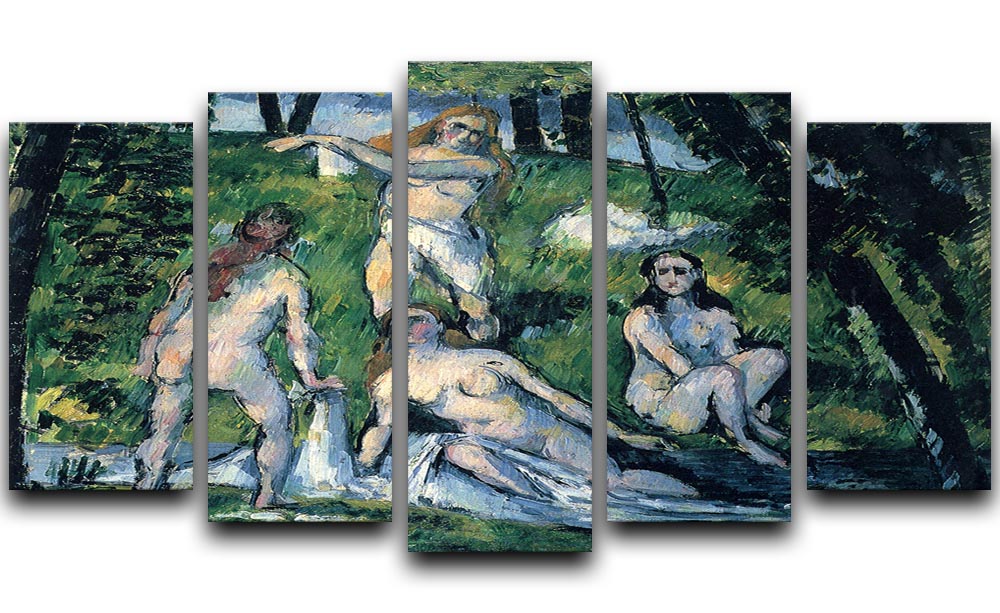 This artwork makes for an ideal gift for art lovers, home decorators, or anyone looking to add a touch of elegance to their space. Whether it's for a housewarming, birthday, or special occasion, the Bathers by Cezanne 5 Split Panel Canvas is sure to impress and delight.