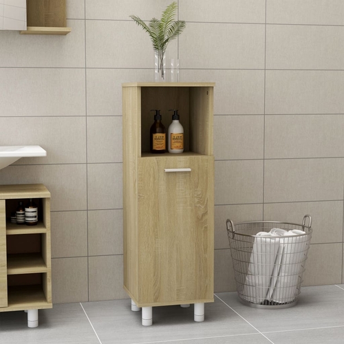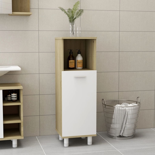 This chic cabinet is made of board, making it sturdy and stable. The laundry room rack has 3 compartments and 1 door, offering various storage options and extra space to store items in your bathroom. There is a handle on door for better opening and closing. The cupboard is easy to clean with a damp cloth.