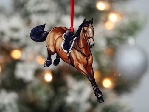 The Bay Hunter Equestrian Decor Jumping Horse Ornament is perfect for various occasions. Whether you're decorating your Christmas tree, adorning your mantel, or hanging it on the wall, this ornament adds a touch of equestrian charm to any space. Its versatile design makes it suitable for year-round display, not just during the holidays.