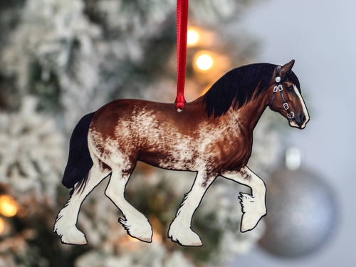 Choosing our Bay Sabino Shire Draft Horse Christmas Ornament means investing in quality, artistry, and a love for horses. This ornament is perfect for those who want to showcase their passion for equestrian life during the festive season and beyond. It’s a conversation starter, a cherished keepsake, and a beautiful representation of the majestic Shire horse.