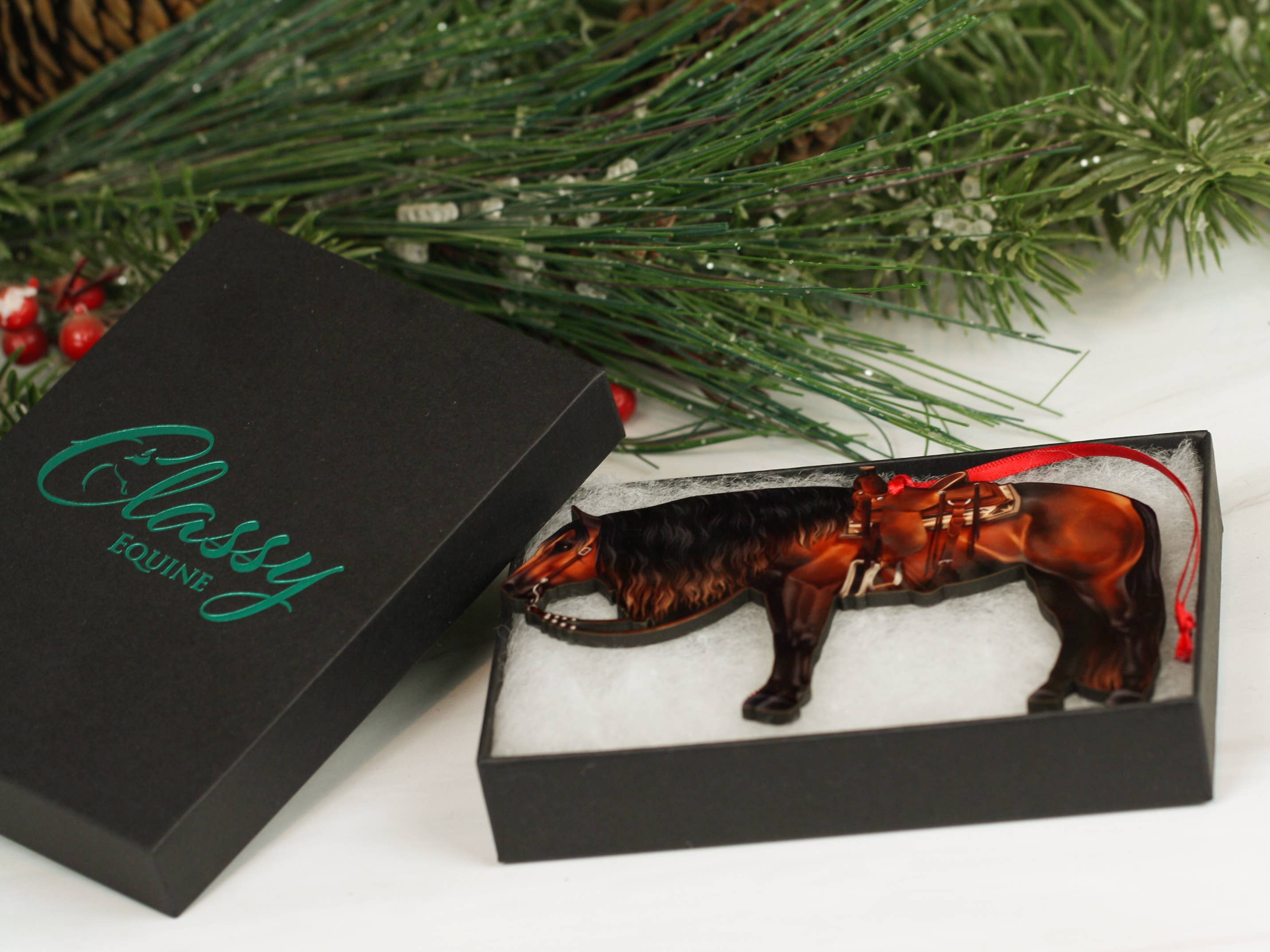 Classy Equine is dedicated to providing high-quality, unique equestrian-themed products that celebrate the love of horses. Our Bay Western Ranch Horse Ornament is exclusive to our brand, ensuring that you receive a one-of-a-kind piece that reflects your passion for horses. With our commitment to craftsmanship and customer satisfaction, you can trust that you are purchasing a product that is made with care and attention to detail.