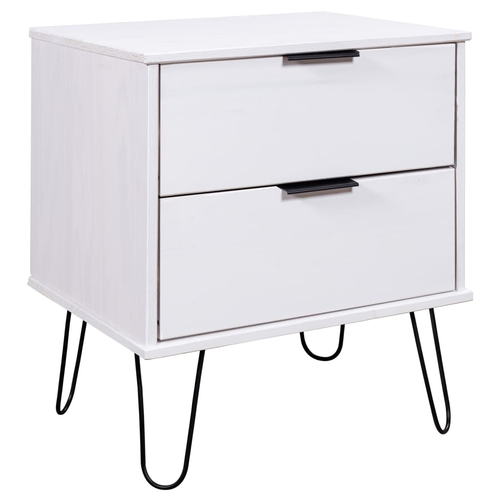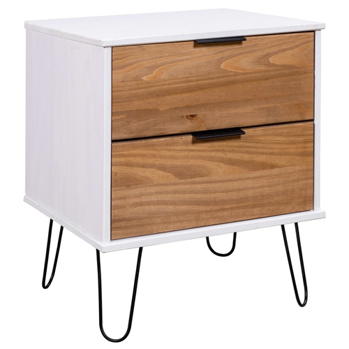 This wooden nightstand is made of solid pinewood, making it highly stable and durable. The metal legs also add to its sturdiness. Its sturdy top is ideal for placing your alarm clock, lamp and other sleeping essentials within reach. The bed cabinet features 2 drawers, providing ample space for keeping your magazines, books, and other small items organised. Additionally, this side cabinet is easy to clean with a damp cloth.