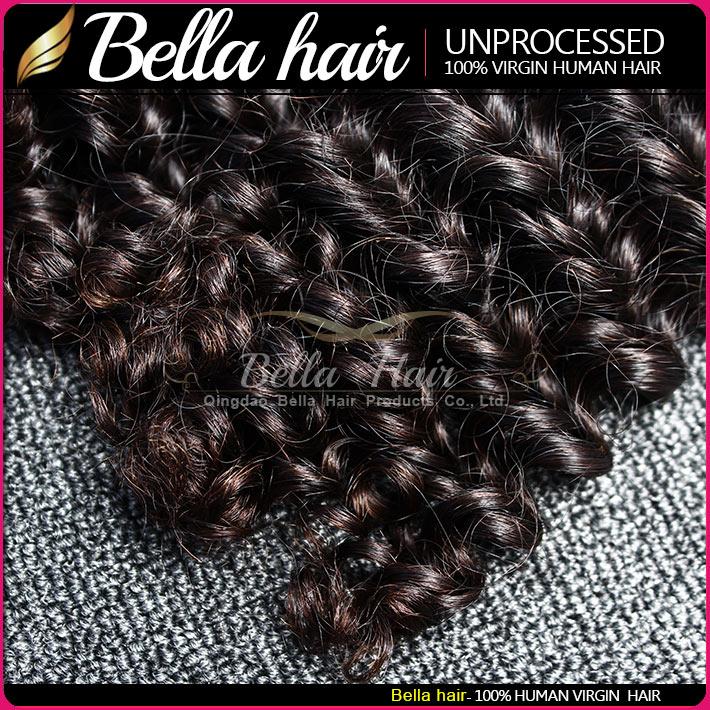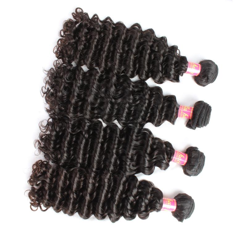 Bella Hair® 8-30 Brazilian Virgin Hair Bundles in deep wave texture, showcasing natural color and high-quality weft construction.