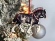 This ornament is available in several stunning variations, including bay with black socks, bay sabino, bay with white stockings, black, gray, and black sabino. You can also find options without stallion tack in our other listings, allowing you to choose the perfect ornament that resonates with your style or the recipient's preferences.