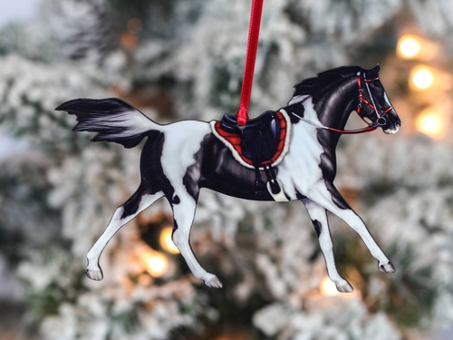 In addition to the black tobiano pattern, this ornament is available in a variety of other stunning designs, including bay, chestnut, gray, and both black and chestnut leopard Appaloosa patterns. This variety allows you to choose the perfect ornament that resonates with your personal style or the preferences of your gift recipient.