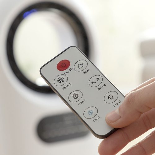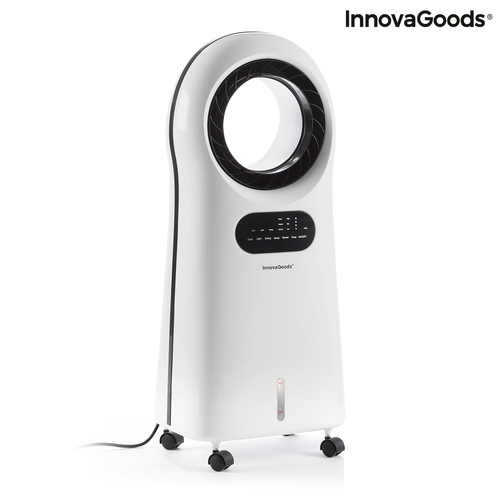 A portable evaporative ionising air conditioner with 4 functions: ioniser, ventilator, cooler and humidifier, that refresh and purify your surroundings. The ionising function is always active on this humidifier-purifier, it attracts dirt in the air and releases clean air. its original, bladeless design gently and continuously amplifies the airflow. This innovative aerodynamic technology facilitates cleaning and helps to reduce the noise level and hazards. It has a 360º air diffuser, a touch control panel, remote control, timer (up to 8 hrs), 3 speed settings (low/medium/high) and 3 ventilation settings: normal (continuous air), natural (natural breeze) and night (soft breeze). The automatic switch-off can be set in increments of 1 to 8 hours: 1 hr, 2 hrs, 3 hrs, 4 hrs, 8 hrs. It also has an LED light with 6 colours which gives its design a modern, elegant touch, and which creates a more relaxed and pleasant atmosphere. The internal tank capacity is 3 ltrs and, like the filter, it can be removed to make cleaning easier. It also includes cool packs: 2 removable tanks for ice which, if desired, will help to increase the cooling effect. The 4 wheels make it easy to move from one part of the home, office, etc. to another. Its range is approx. 20 m², its power is 110 W and, as it is low energy, it will save energy too.