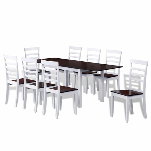 This wooden dining table set, consisting of 1 table and 4 chairs, has a sleek, modern design and is ideal for those who are looking to add a touch of style to their interior.