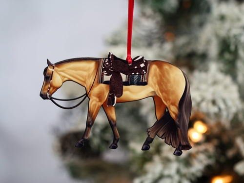 Introducing the exquisite Buckskin Western Pleasure Horse Ornament, a stunning piece that captures the essence of equestrian elegance. This ornament is not just a decoration; it is a celebration of the beauty and grace of Quarter Horses, making it a perfect gift for horse lovers and enthusiasts alike. Crafted from high-quality 1/8" thick composite wood, this ornament is laser cut to ensure precision and detail in every curve and contour of the horse's form.