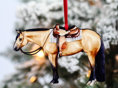 Whether you're an avid horse lover or simply appreciate the beauty of equestrian-themed decor, the Buckskin Western Quarter Horse Ornament is a delightful addition to your holiday traditions. Celebrate the spirit of the season with this charming ornament that reflects your passion for horses and the joy of the holidays.