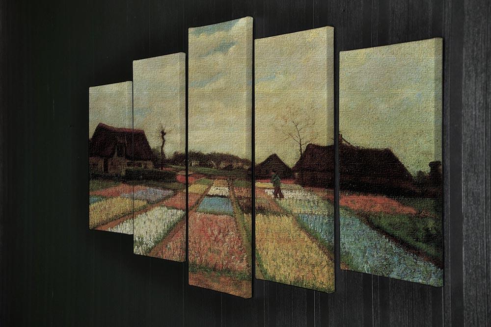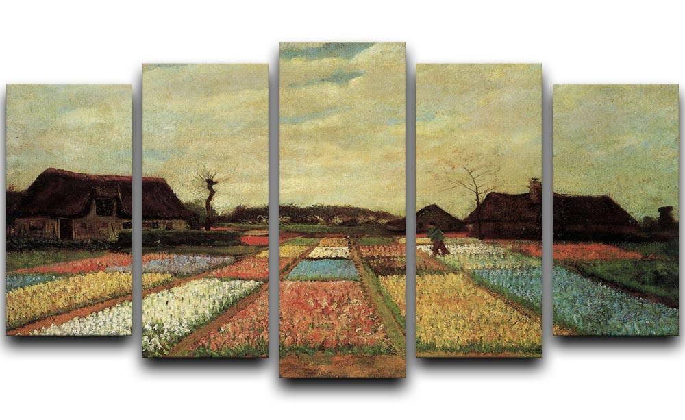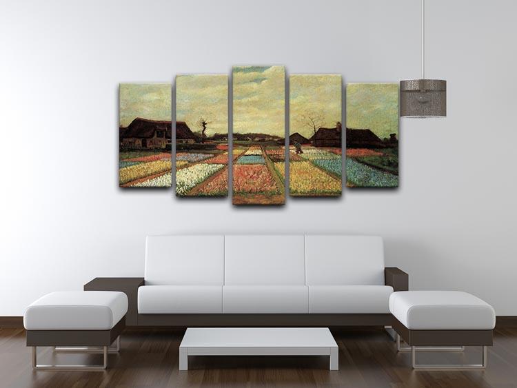 A vibrant 5-split panel canvas artwork featuring Van Gogh's Bulb Fields, showcasing colorful flowers and dynamic brush strokes.