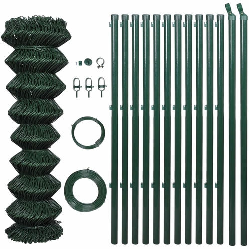 Chain Link Fence with Posts Steel 2' 7"x49' 2" Green