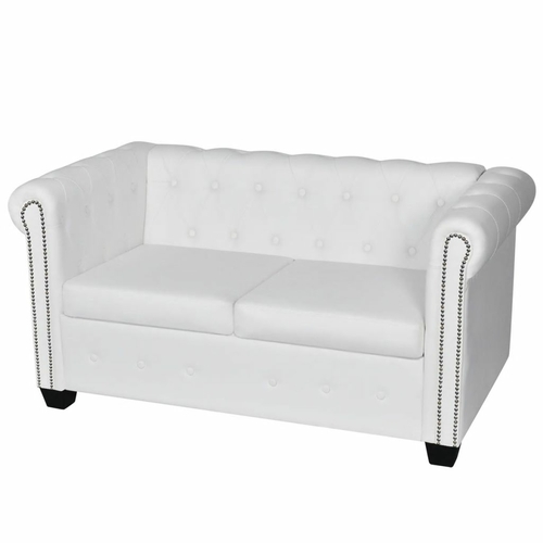 This Chesterfield sofa set, consisting of a 2-seater and a 3-seater, is the perfect blend of comfort and sophistication and will make a great addition to any home or office. This 2-seater and 3-seater sofa set, with its tufted and studded detailing and gracefully curved arms, will add a touch of luxury, class and style to any interior.