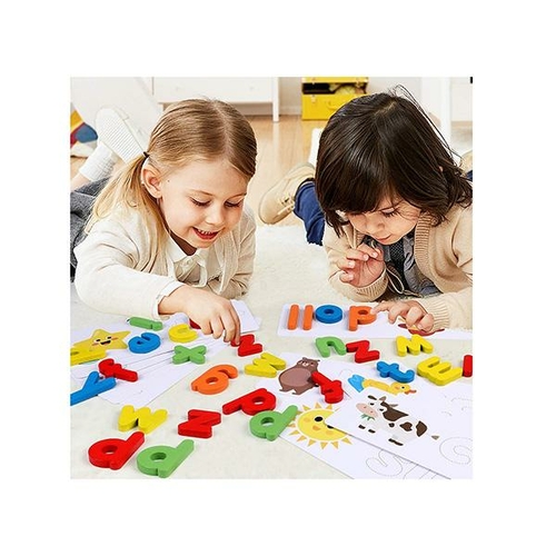 Fun learning tool for kids: Pick the wooden letters and find the corresponded flash cards to put them on the cards to form a word! The vivid color of the alphabet flash cards can attract your kid's attention and inspire your kid's interesting in learning. It is a great learning toy for kids to learn the alphabet and words. It can stimulate children's imagination and creativity and helps children learning while playing.