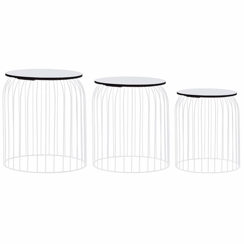 The solid wood tabletop provides a smooth and stable surface on which you can place drinks, vases or other decorative items. By removing the top, you can turn the side table into a storage basket. Moreover, the smaller table can be placed inside the larger one to save space. The strong powder-coated metal frame adds to the robust construction as well as an industrial look.