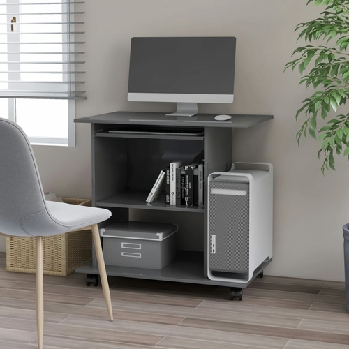 The large work surface allows you to use your computer and writing materials comfortably. This computer table is designed with a sliding keyboard section and a 1 special shelf for the CPU tower and 2 shelves for your other computer essentials. This workstation, constructed of board, assures you years of service. Additionally, the installed castors are designed for convenient mobility.