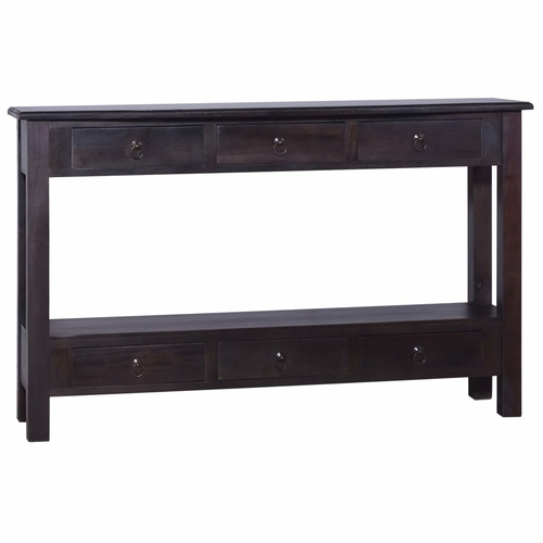 This solid mahogany wood console table featuring 6 drawers and 1 shelf brings a unique presence to your living space.
