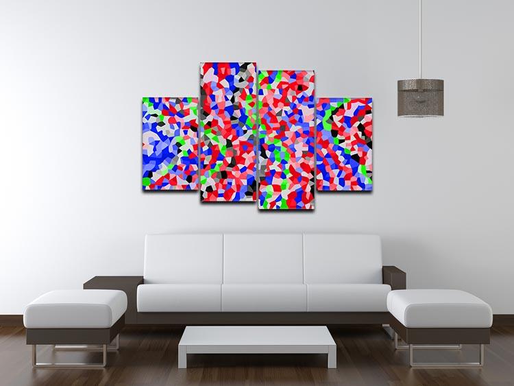 A stunning 4-split canvas artwork featuring vibrant colors and intricate designs, displayed in a modern living space.