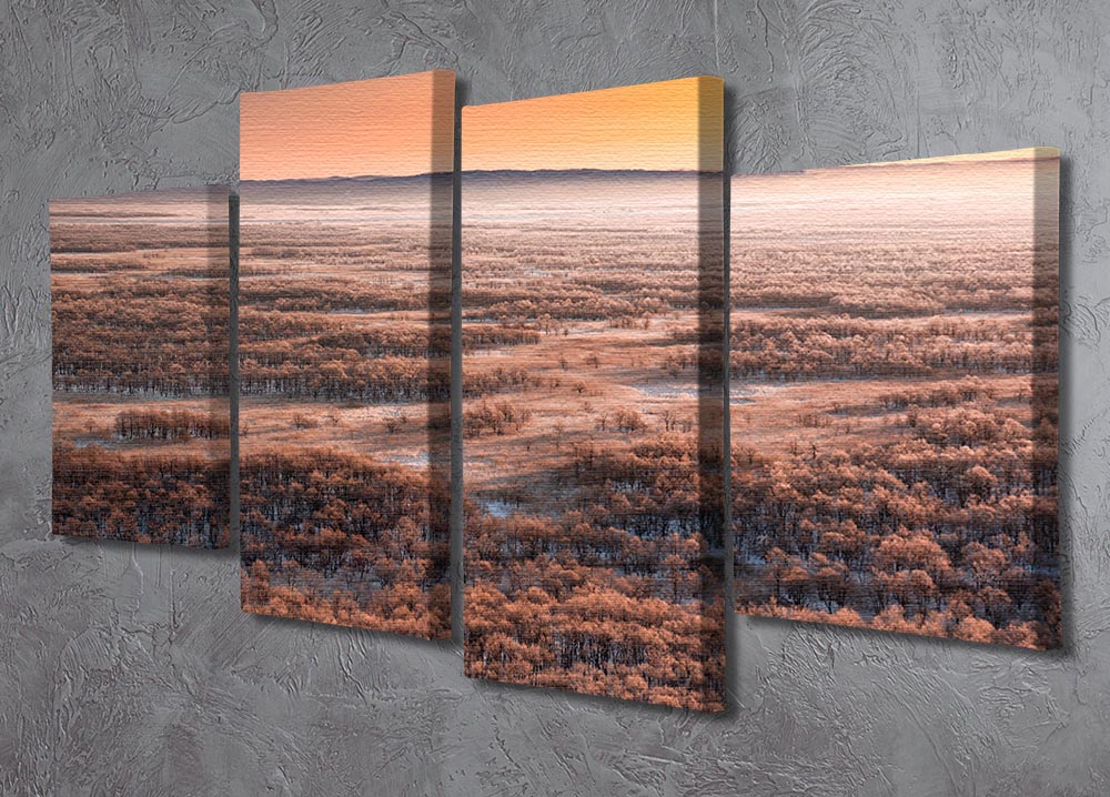The Dawn 4 Split Panel Canvas is an innovative artwork that redefines how we perceive and display art in our living spaces. This unique piece consists of four equal sections, or panels, that together create a cohesive and striking image. When hung together, these panels form a stunning visual that captivates and enhances any room's ambiance.