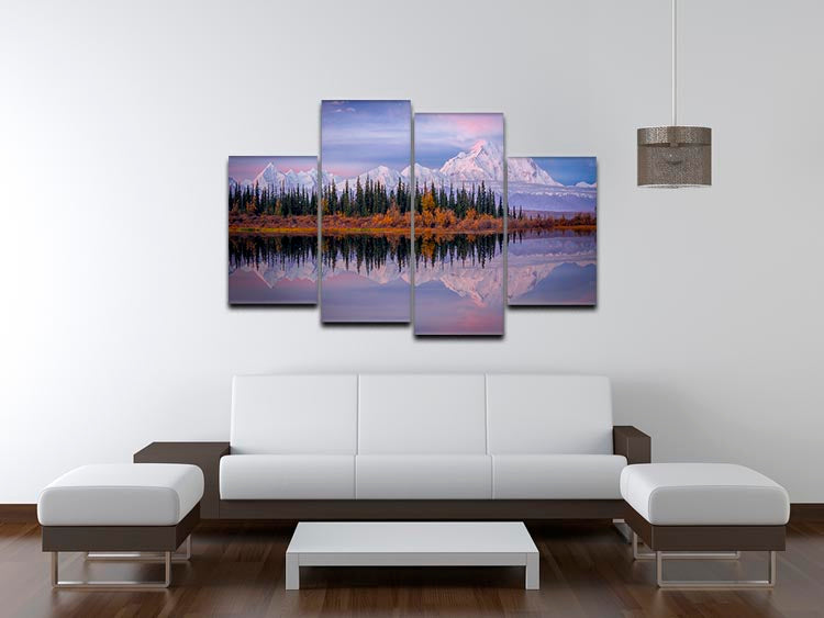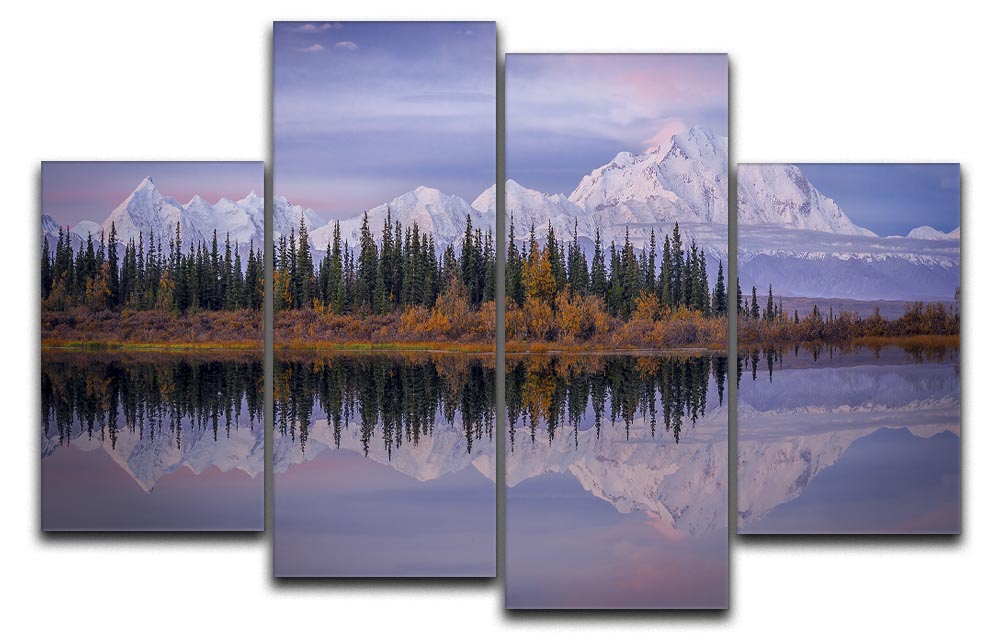 The Denali Reflection 4 Split Panel Canvas is an exquisite piece of art that transforms any space into a visual masterpiece. This unique artwork is divided into four equal sections, or panels, which together create a cohesive and striking image. The split panel design not only enhances the aesthetic appeal of the artwork but also adds a dynamic, multi-dimensional effect that captivates viewers.