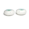 Each porcelain dimple, has an aqua green indent of coloured, crystallised glass.