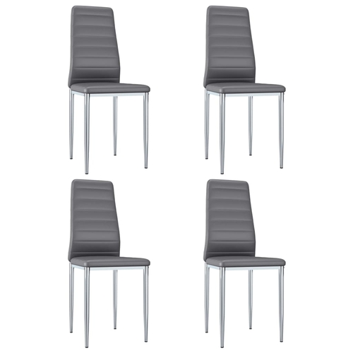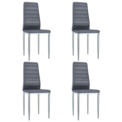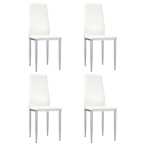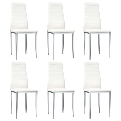 The chairs have a sturdy metal chrome frame and are upholstered in a high-quality faux leather that is soft and durable. Thanks to the thickly-padded seats and backrests, as well as the ergonomic design, these dining chairs are highly comfortable. The chairs are easy to assemble.