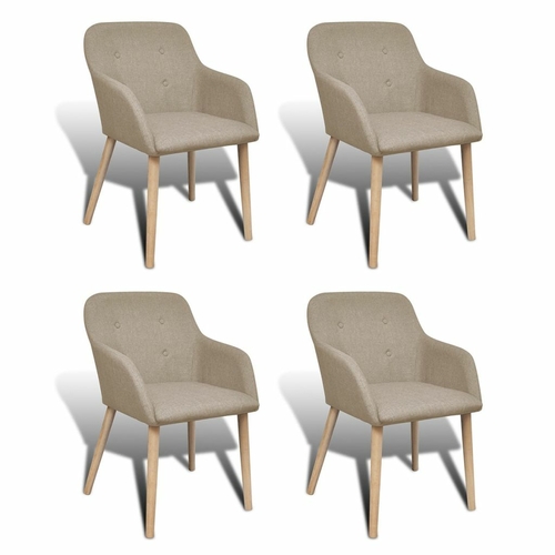 This set consisting of 4 dining chairs with armrests, upholstered in luxurious, high-quality fabric, is aesthetically and ergonomically designed to make a decorative as well as comfortable addition to your dining room.