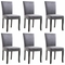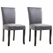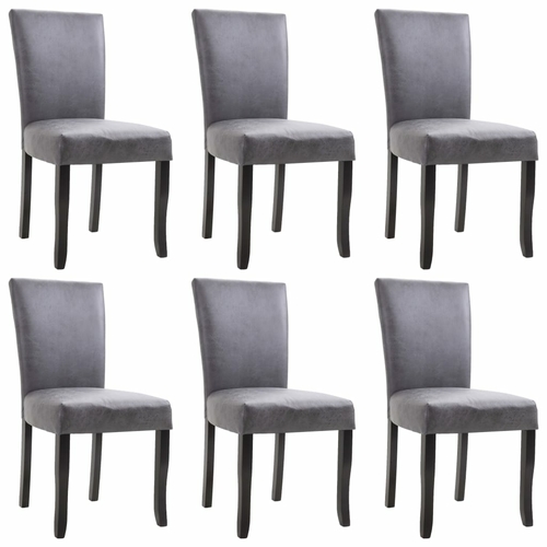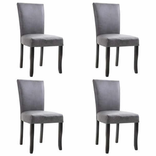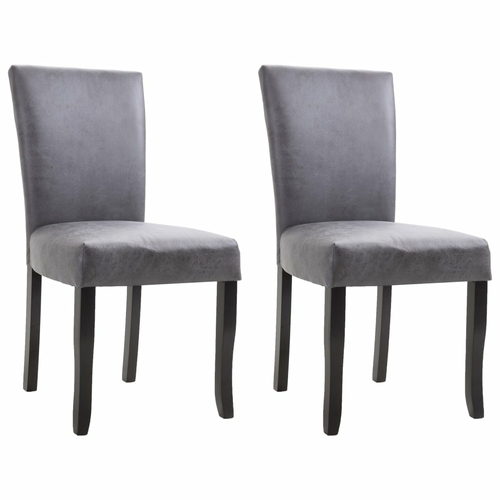 The dining chairs are upholstered in a soft faux suede leather and thickly padded to provide maximum comfort. Its ergonomic design makes the dining chair exceedingly comfortable to nestle. The backrest, decorated with unique nails, adds a fabulous charm to the chair. Thanks to the solid wooden legs, the chairs are sturdy and stable.