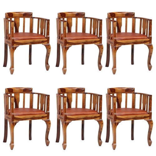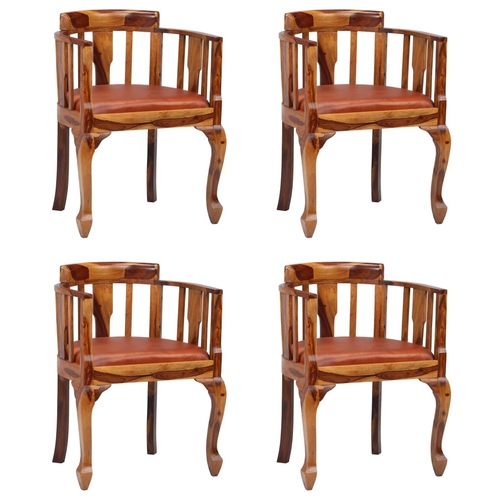 The seat is upholstered in real goat leather which is soft and durable. The frame is made of solid Sheesham wood. Thanks to the ergonomically designed back- and armrests and the padded seat, these dining chairs will provide the utmost comfort.