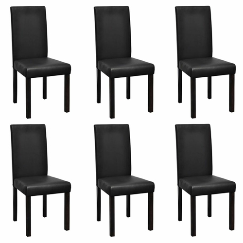 Thanks to the thickly padded seat and backrest, these artificial leather chairs are very comfortable to sit on. The feet are made of durable wood that can be cleaned with ease. These attractive chairs are contemporary yet timeless. Assembly is very easy.