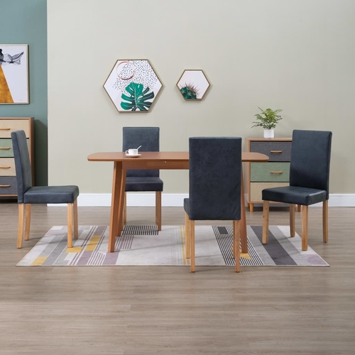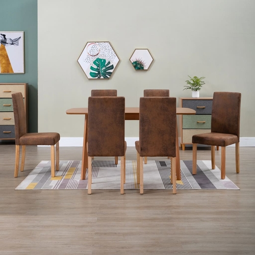 Our set of 6 fabric dining chairs will be a great addition to any kitchen or dining room decor. Its trendy and modern design will suit any interior. Upholstered in quality fabric, these chairs are thickly padded for extra comfort.